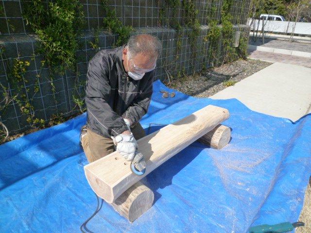 H24年4月9〜11日にかけて、環境コミュニケーションセンターで 倒木を利用してベンチを製作しました。ベンチは環境エコパーク公園と 環境コミュニケーションセンター展示フロアーに設置されました。 おもちゃドクターが半田ごてをチェーンソーや電動のカンナに 持ち替えて、述べ3日間かけて製作しました。お疲れ様でした。 ・・画像をクリックすれば拡大します・・